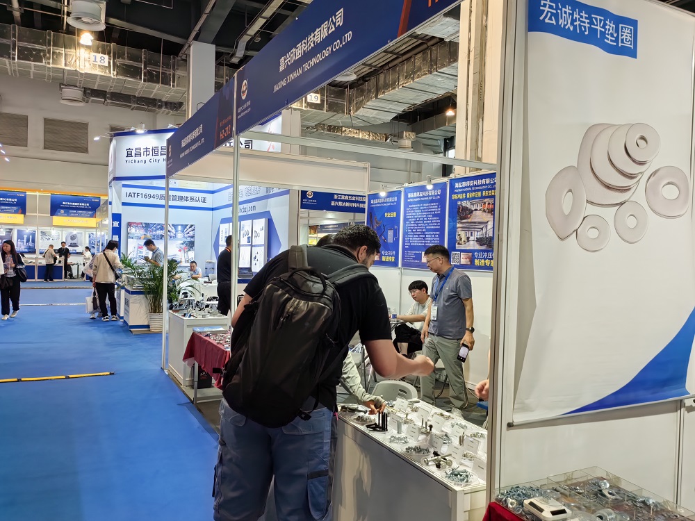 Технология Jiaxing Xinhan свела на выставке международной индустрии индустрии крепежного застежка 2025 года, обсуждая будущее отрасли вместе.